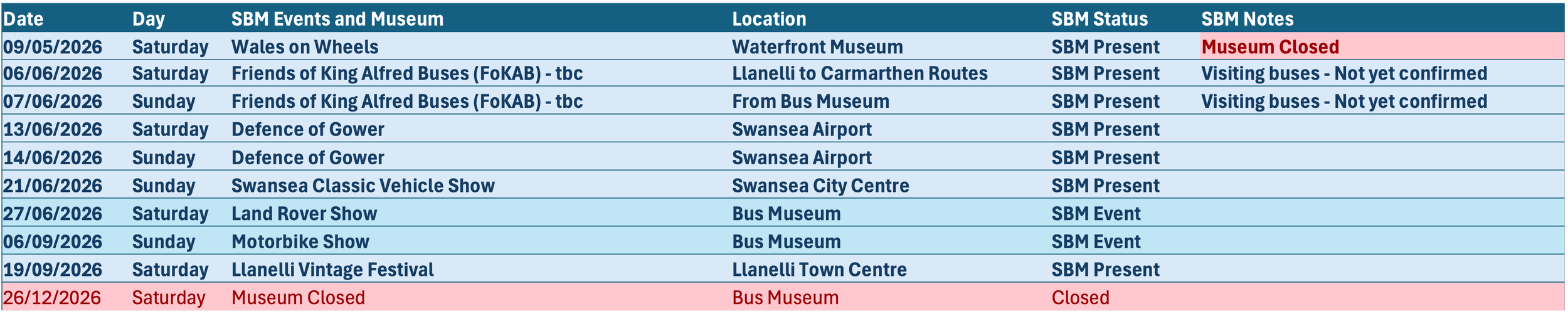 Swansea Bus Museum & Transport Heritage Centre hosts events throughout the year celebrating South Wales’ transport history. From vehicle displays and open days to community projects and special exhibitions, there’s always something to discover.